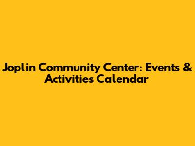 Joplin Community Center: Events & Activities Calendar