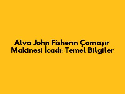 Alva John Fisher'ın Çığır Açan İcadı: Çamaşır Makinesi