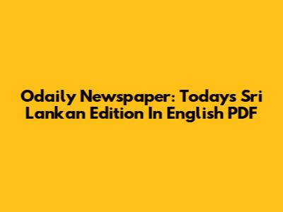 Odaily Newspaper: Today's Sri Lankan Edition In English PDF