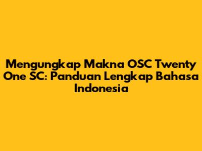 Mengungkap Makna OSC Twenty One SC: Panduan Lengkap Bahasa Indonesia