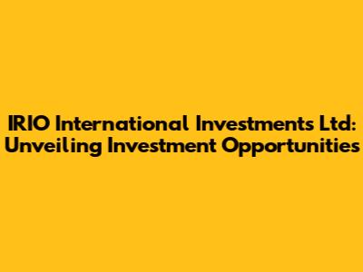 Is IRIO International Investments Ltd the Right Choice for You?
