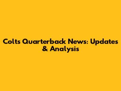 Colts Quarterback News: Updates & Analysis