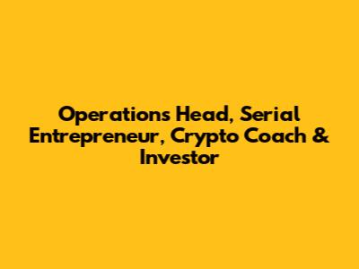 Operations Head, Serial Entrepreneur, Crypto Coach & Investor
