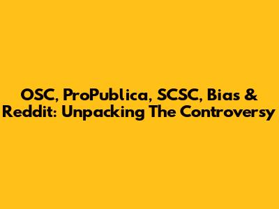 OSC, ProPublica, SCSC, Bias & Reddit: Unpacking The Controversy