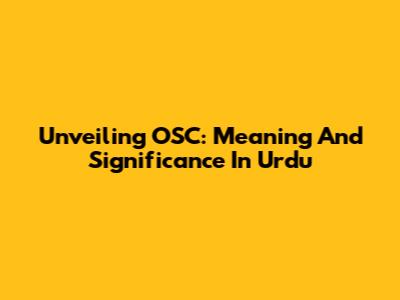Unveiling OSC: Meaning And Significance In Urdu