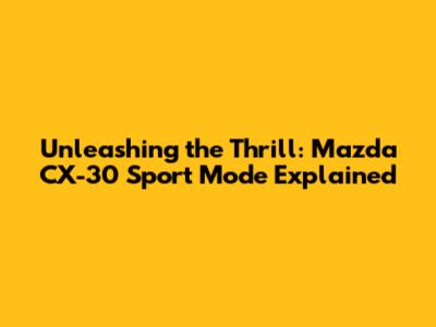 Hey there, car enthusiasts! Let's dive into the exciting world of the Mazda CX-30 Sport Mode. If you're anything like me, you're always looking for ways to spice up your driving experience, and the Sport Mode on the CX-30 is a fantastic feature that's designed to do just that. This article is your ultimate guide to understanding what Sport Mode is all about, how it works, and why you might want to use it. We'll cover everything from the technical details to real-world driving scenarios, so you'll be well-equipped to make the most of your Mazda CX-30. So, buckle up, and let's get started!