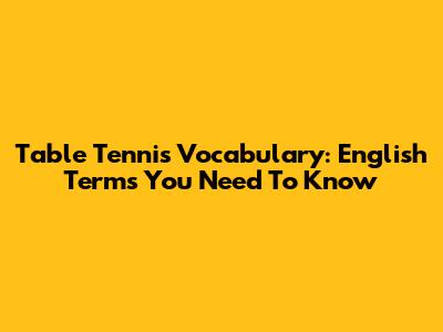 Table Tennis Vocabulary: English Terms You Need To Know